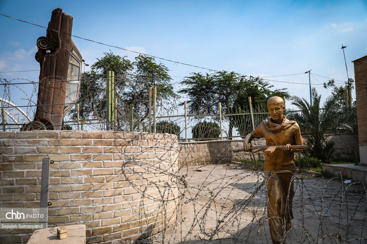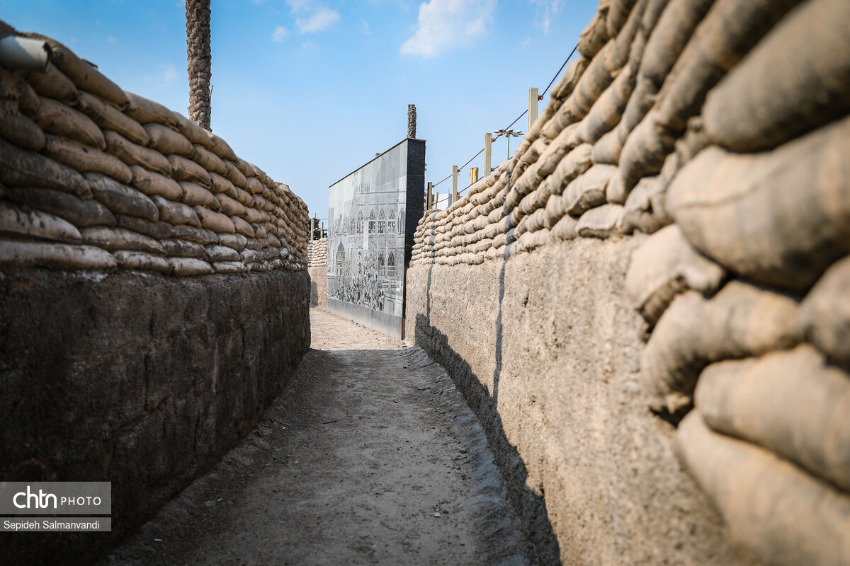 در میان انبوهی از درختان نخلی که زیر آفتاب این شهر دیده میشوند، در کنار سنگرهای خاکی، زمینهایی دیده میشوند که دور تا دور آنها سیم کشی شده و در میان آنها تندیسی از رزمندهها به چشم میخورد. اینها بخشی از عملیاتهای مهم جنگی هستند که برای بازدید علاقهمندان بازنمایی شدهاند