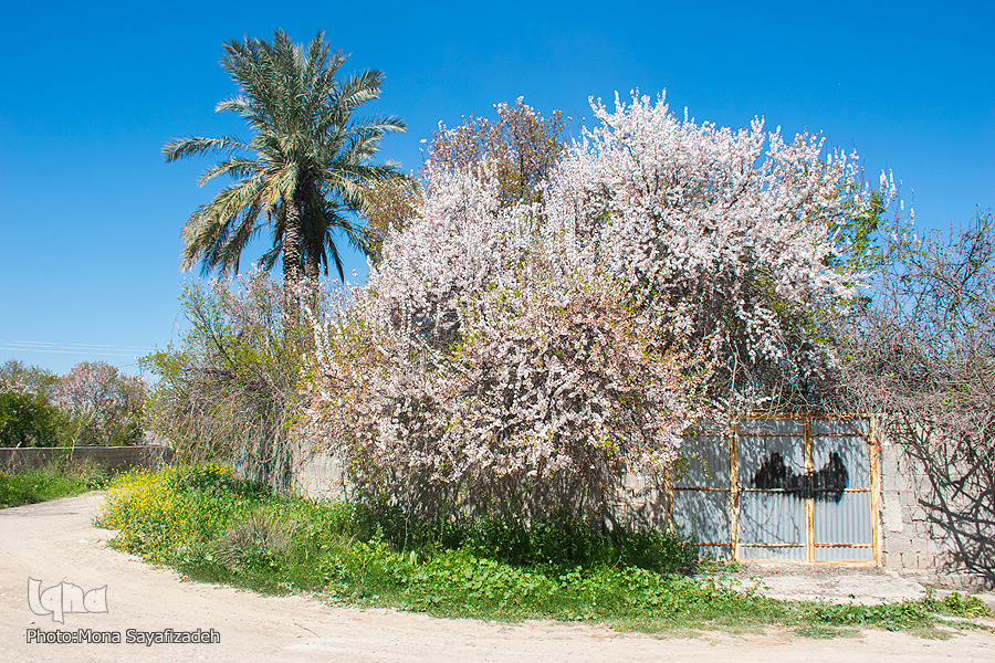 شکوفههای درختان میوه در آستانه بهار در روستای منصوریه بهبهان باز میشوند تا برای تابستان میوههای این فصل به بار بنشینند. این مناظر برای بازدید گردشگران در روزهای نوروز بسیار دیدنی و روحبخش خواهد بود. روستای منصوریه شهرستان بهبهان در ۵ کیلومتری این شهرستان قرار دارد.