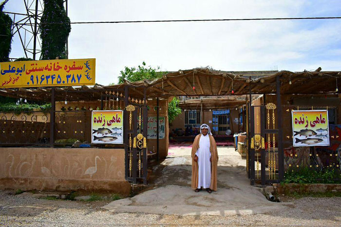 اگر در ابتدا تعداد مسافر محدودی میتوانستند در اقامتگاهشان ساکن شوند، حالا آنها برای اقامت صد گردشگر میتوانند محیط مناسبی فراهم کنند. یکی از ویژگیهای اقامتگاه ابوعلی، ارایهی غذای خانگی و محلی است:«همسرم برای مسافران کباب ماهی و خورشت مرغ محلی درست میکند و یک غذای مخصوص به اسم مفتح. مفتح مرغ شکم پری است که از ادویههای محلی برای تهیه آن استفاده میکنند.»