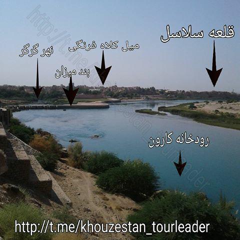رودخانه کارون پس از عبور ازتنگه ها و کوهستان های سر به فلک کشیده زردکوه بختیاری در رشته کوه های زاگرس با ورود به شهر باستانی شوشتردر استان خوزستان به دو رودخانه مجزا به نام گرگر و شطیط(ماه پاریان ) تقسیم میشود و این دو رودخانه شوشتر را مانند جزیره ای در بر میگیرند و در جنوب شوشتر در (بندقیر) همراه با رودخانه دز، کارون را دوباره تشکیل و بعداز شهر هایی همچون اهواز در انتهای مسیر به خلیج همیشه فارس می پیوندد.