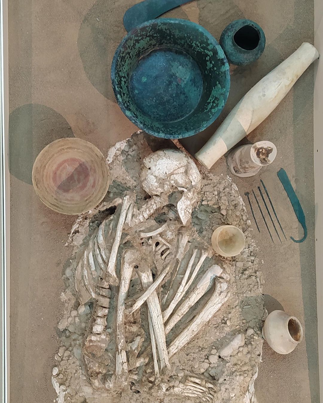 در کنار خاتون یک لگن مسی بزرگ، یک کوزۀ مسی، یک سنجاق سر، دو کاسه مرمرین، یک جام سفالی، یک خنجر، یک شمشیر بزرگ و مقدار زیادی قلابهای بافندگی قرار داده شده بود.