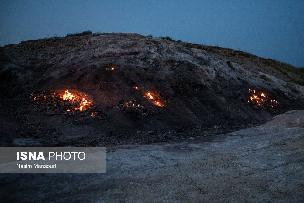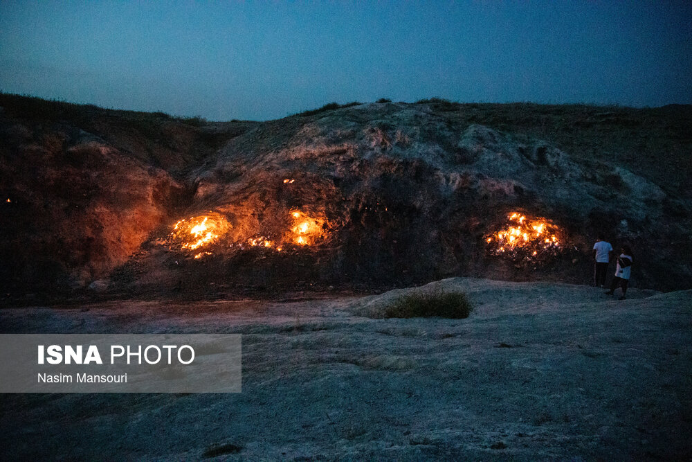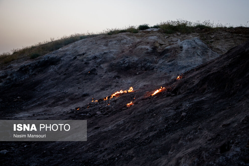گازهای هیدرکربوری از لایههای مختلف زمین عبور میکنند و از هر درز و شکافی در سطح زمین به بیرون شعله ور میشوند به طوری که در شب نور سوختن این گاز بیشتر دیده میشود. روشنی آتش این کوه در تاریکی شب جلوه زیبایی به منطقه میدهد به گونه ای که تا به حال توانسته گردشگران زیادی را در ساعات شب به سوی خود بکشاند.