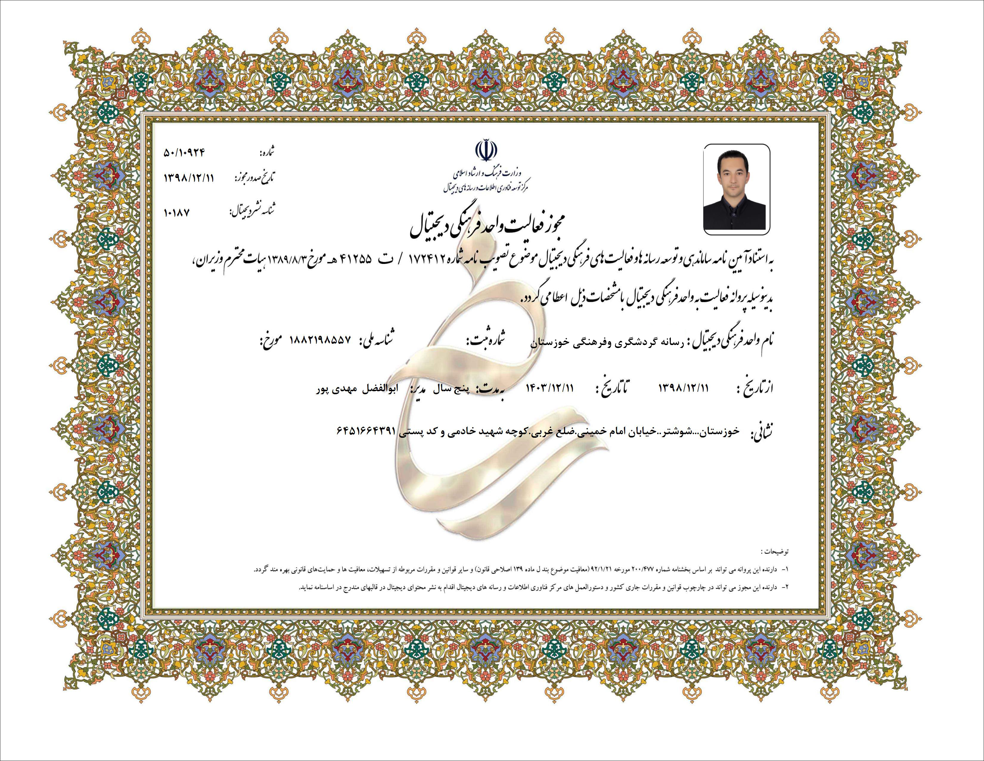 مجوز رسانه گردشگری وفرهنگی خوزستان