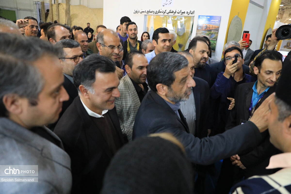 در سومین روز از نمایشگاه بینالمللی گردشگری تهران مهندس سیدعزتالله ضرغامی وزیر میراثفرهنگی، گردشگری و صنایع دستی، جواد واحدی معاون امور مجلس، حقوقی و استانها، علیاصغر شالبافیان معاون گردشگری وزارت میراثفرهنگی، گردشگری و صنایعدستی، علیرضا ایزدی مدیرکل ثبت آثار و حفظ و احیای میراث معنوی و طبیعی، عبدعلی ناصری مدیر عامل شرکت توسعه نیشکر و صنایع جانبی و دیگر مسئولان کشوری و استانی از غرفه خوزستان بازدید کردند.
