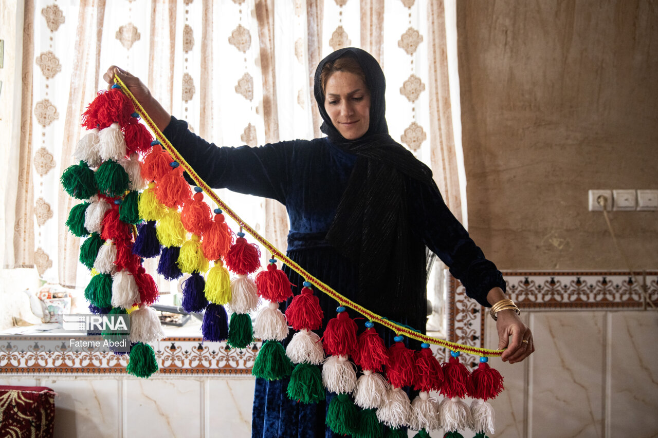 زن هنرمند، این نوارها را با بسم ا… شروع به بافتن می کند و امیدوار است که رشته ی شادی های هیچ کس گسسته و پاره نشود