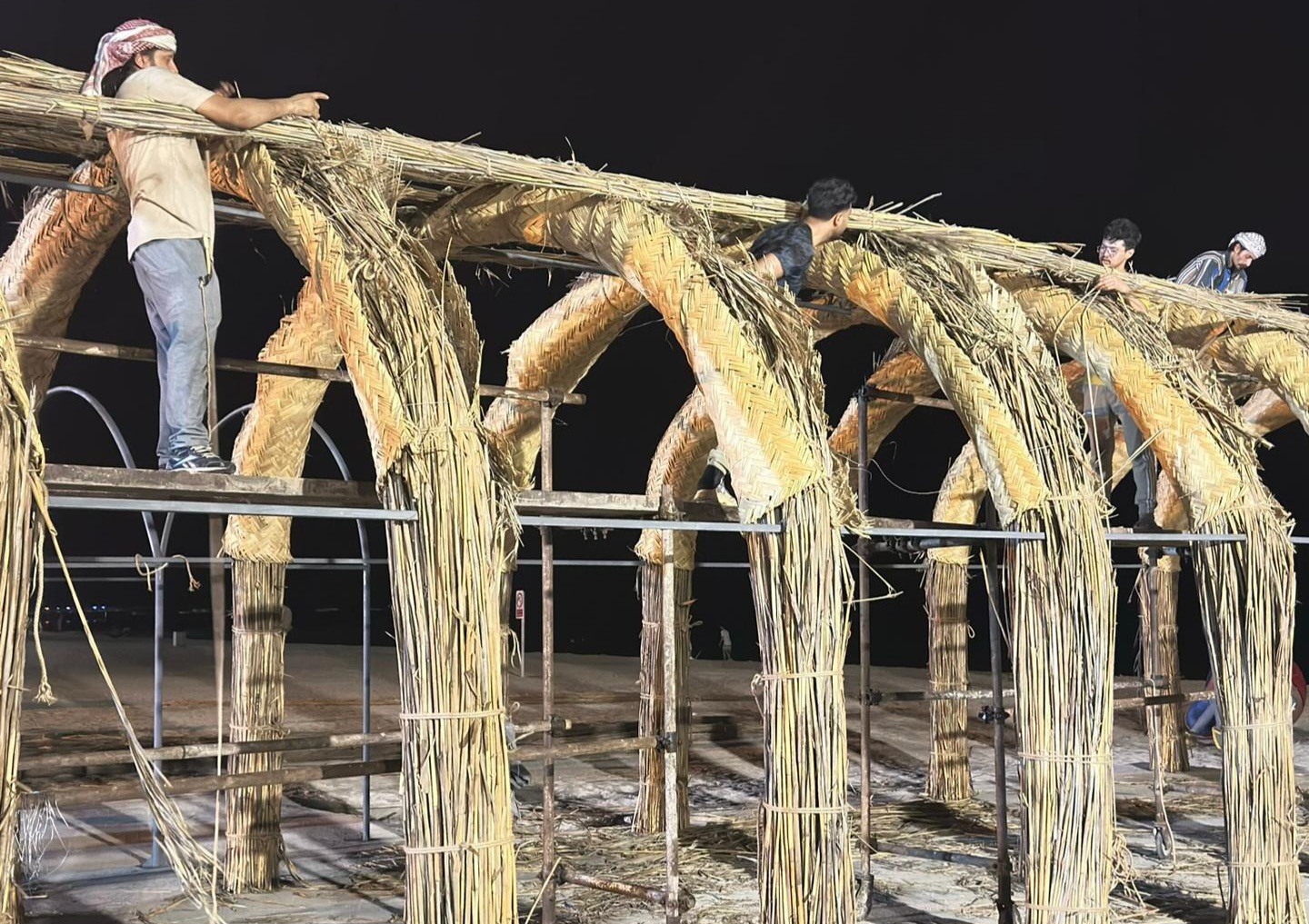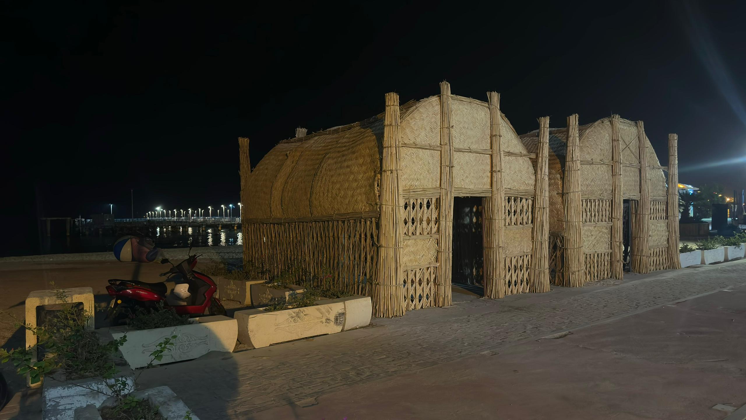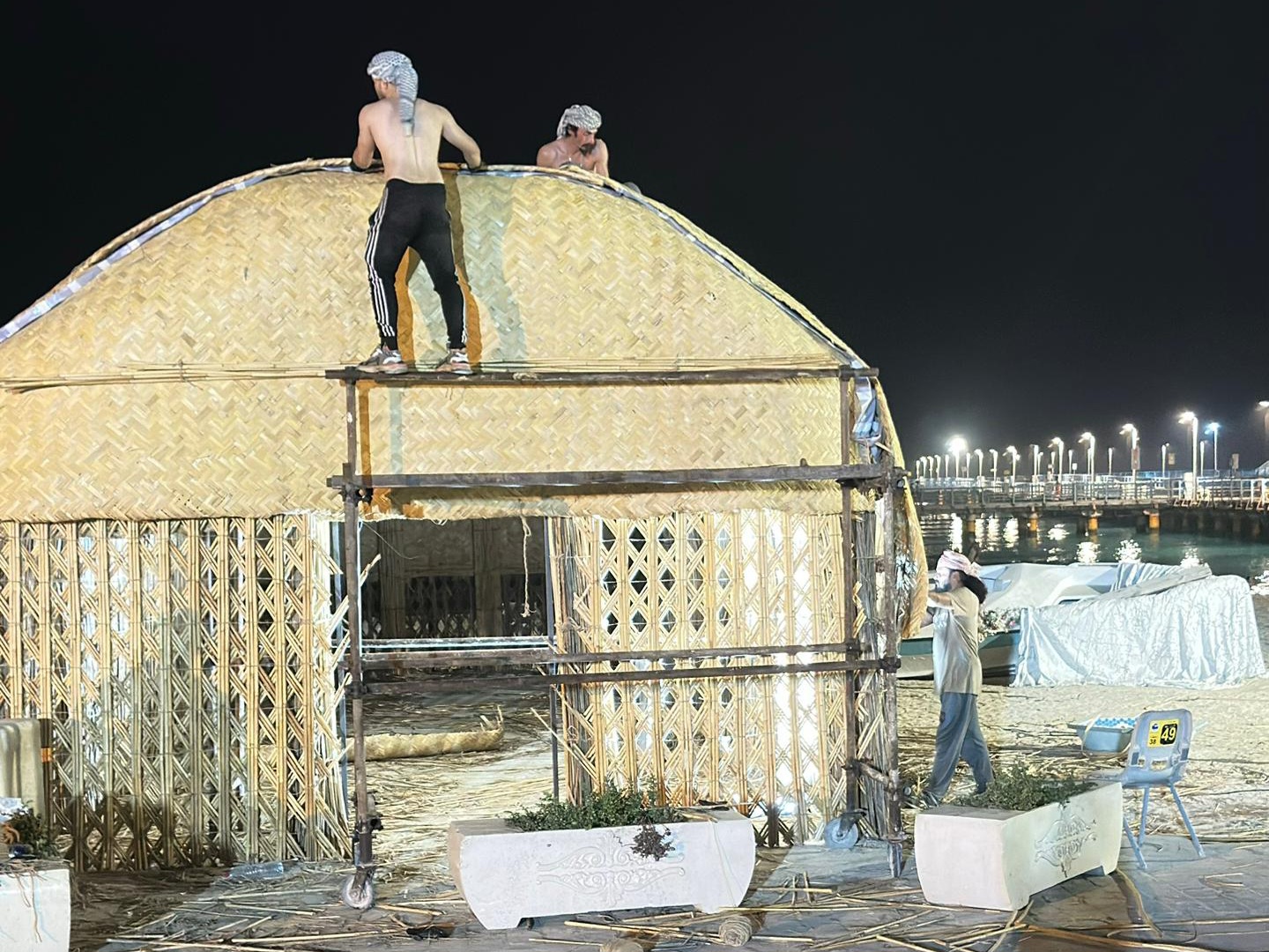 *در راستای اشاعه فرهنگ و رسوم مردم عرب خوزستان ساخت دو عدد مضیف چشم نواز در کنار اسکله تفریحی در جزیره کیش توسط گروه فرهنگی هنری میسان خوزستان*