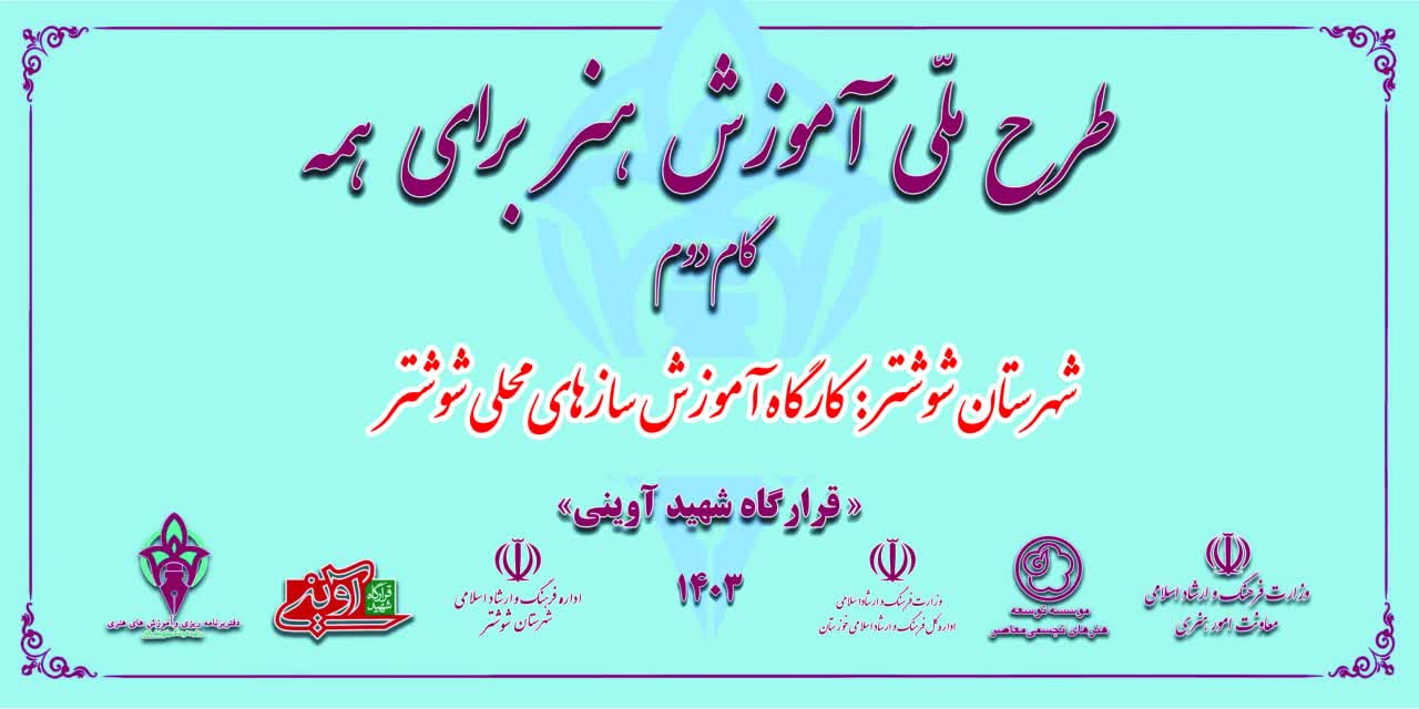 شوشتر رتبه ی نخست آموزش رایگان هنر در کشور را داراست و در این دوره نیز البته با ظرفیت محدود و تنها یک رشته کلاس های آموزشی را برگزار خواهیم کرد.