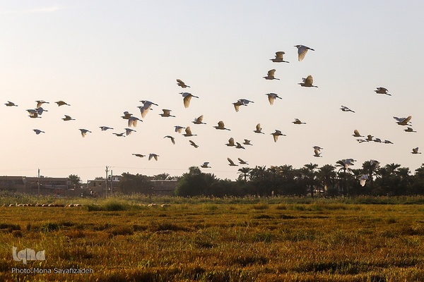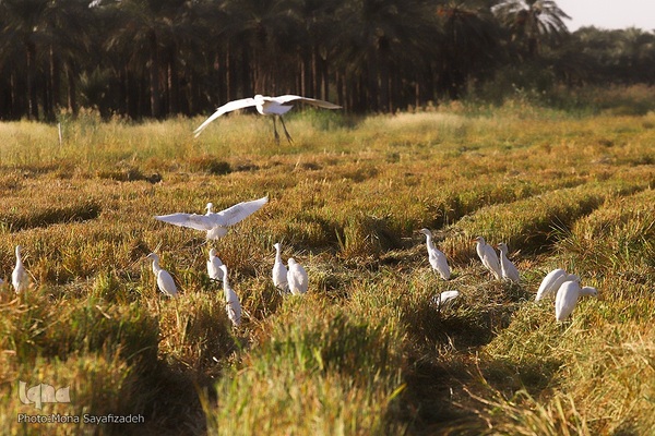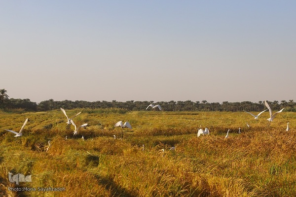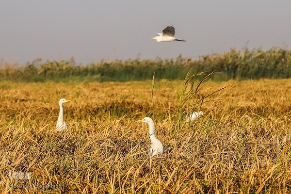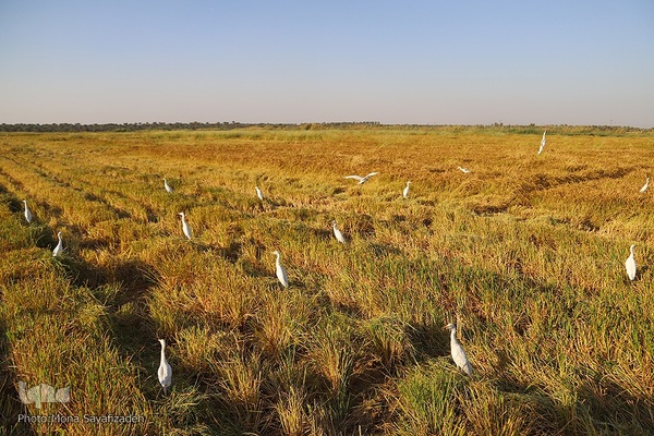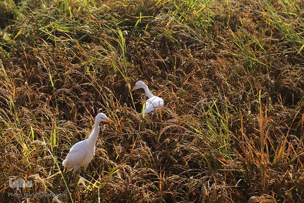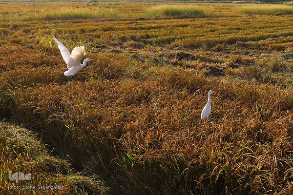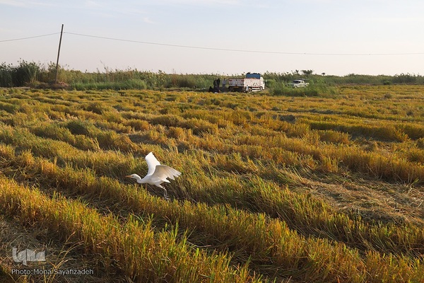 در فصل برداشت شلتوک برنج گاوچرانکها که از خانواده پرندگان حواصیل هستند، در مزارع برنج به زیادی دیده میشوند و در هنگام برداشت ملخهایی را که در مرزعه هستند شکار میکنند که این اتفاق صحنههایی زیبا از طبیعت را به ارمغان میآورد.