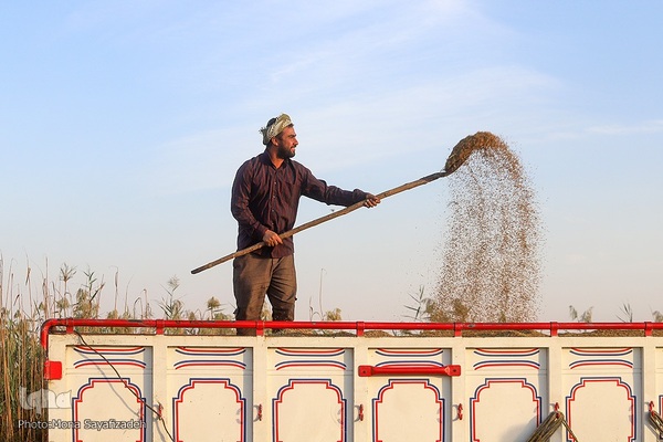 برداشت محصول شلتوک برنج از مزارع روستای بهر شهرستان کارون در استان خوزستان آغاز شده است.