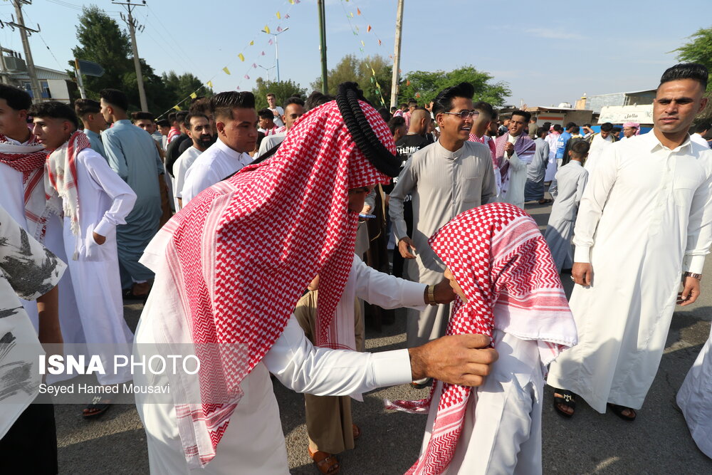 به گزارش ایرنا آئین سنتی معایده توسط مردم عرب خوزستان پس از اقامه نماز عید سعید فطر در مناطق مختلف این استان از جمله منطقه زویه اهواز برگزار شد.
