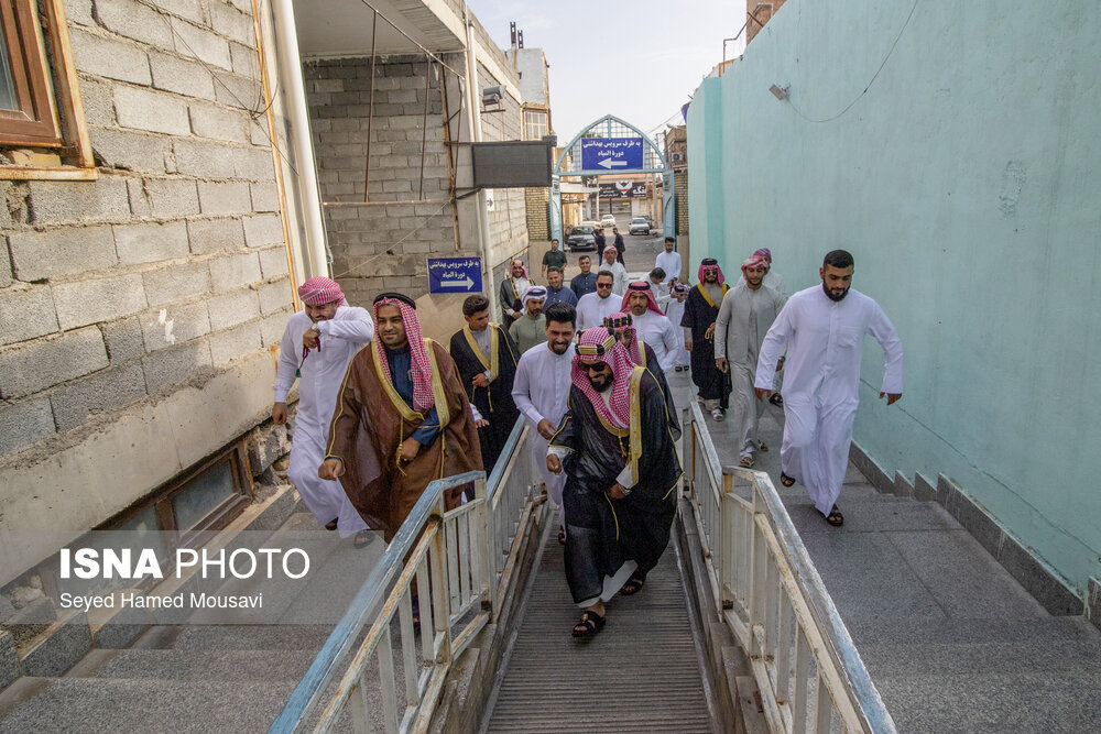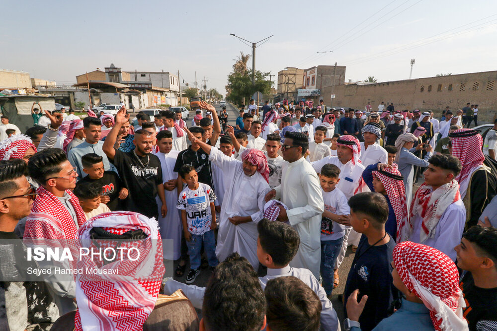آیین سنتی معایده (تبریک عید، عید دیدنی)، صبح عید سعید فطر در مناطق مختلف عرب نشین خوزستان برگزار شد.