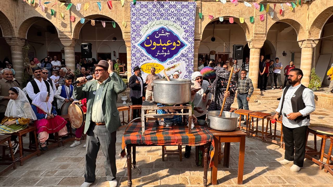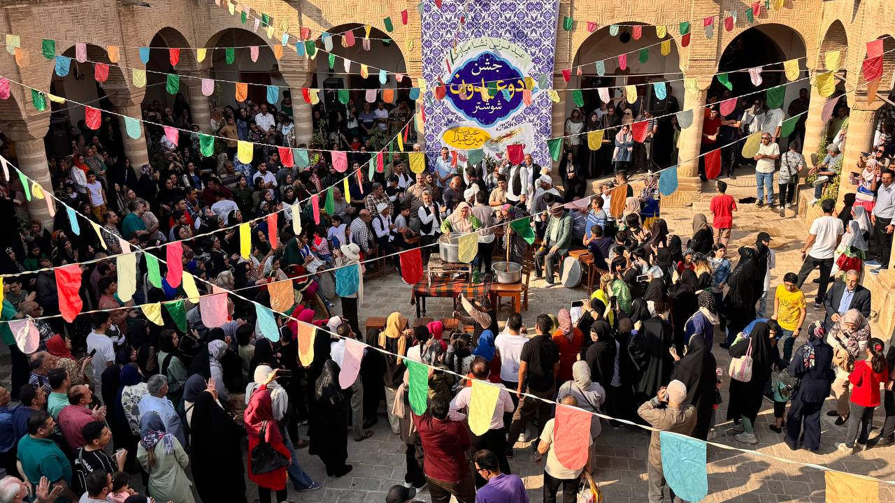در آئین کهن شرکتکنندگان با لباسهای سنتی شوشتری در بخشی از بافت تاریخی شهر و سرای جهانی افضل حاضر و همراه با ساز و آوازهای محلی به شادمانی پرداختند