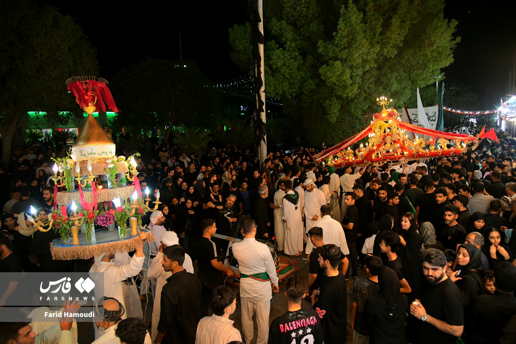 این مراسم پرشور، با حضور عزاداران حسینی و با روایتی تأثیرگذار از ایثار و عشق به امامت همراه بود مردم غیور خرمشهر، با اجرای نمایشی نمادین از عروسی القاسم بن الحسن(ع) یاد و نام این شهید جوان کربلا را زنده نگه داشتند و بار دیگر وفاداری خود را به آرمانهای امام حسین(ع) نشان دادند.