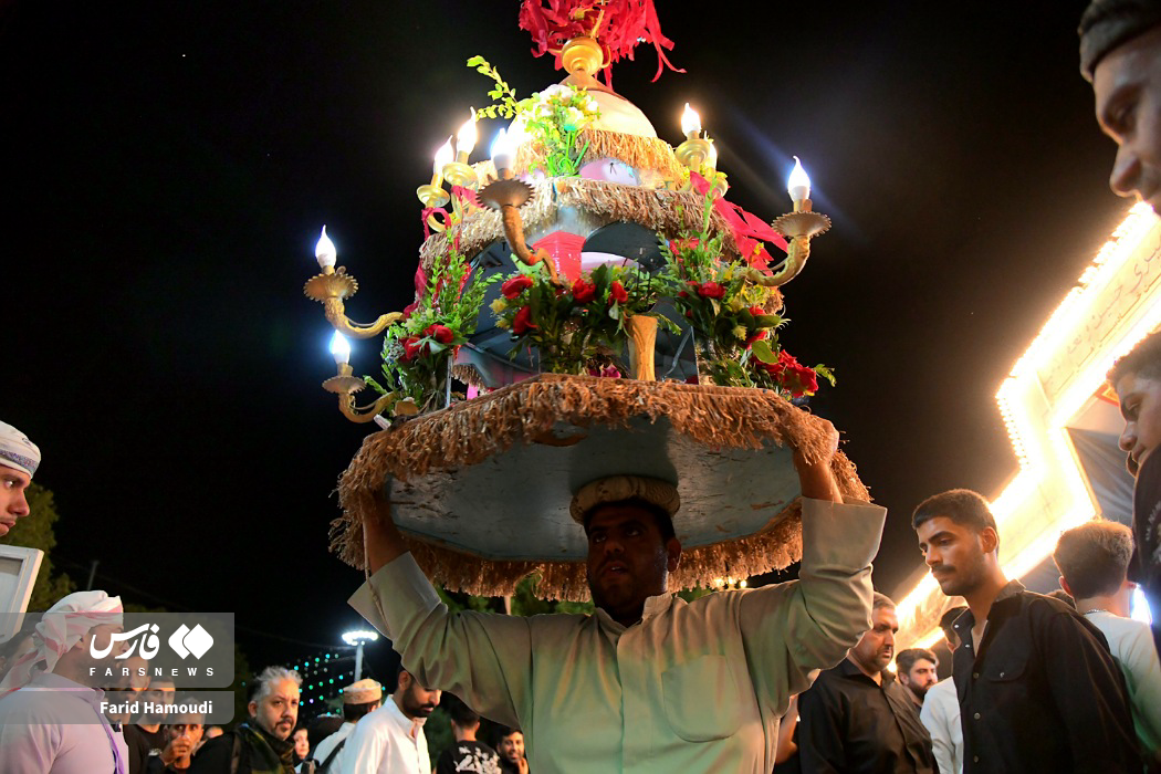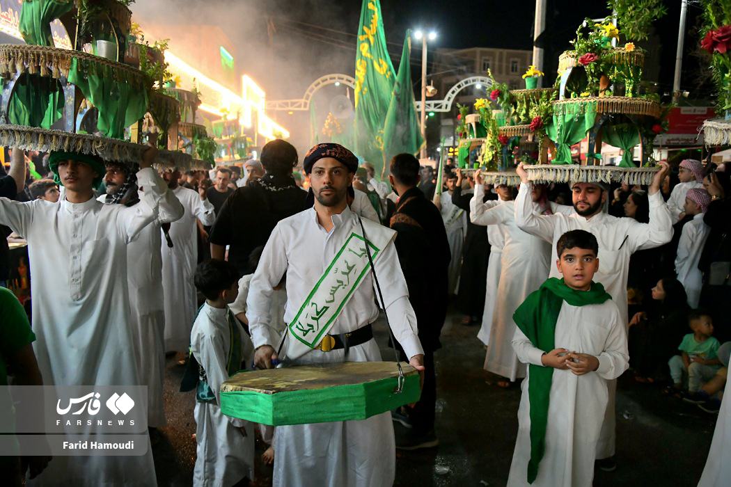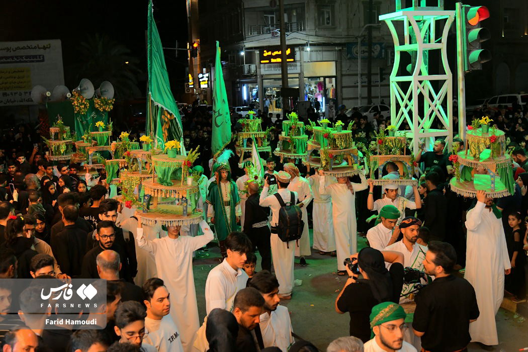 در آیینی باشکوه و معنوی، مراسم زفاف حضرت القاسم(ع) در شب هشتم محرم در شهر مقاوم خرمشهر برگزار شد.