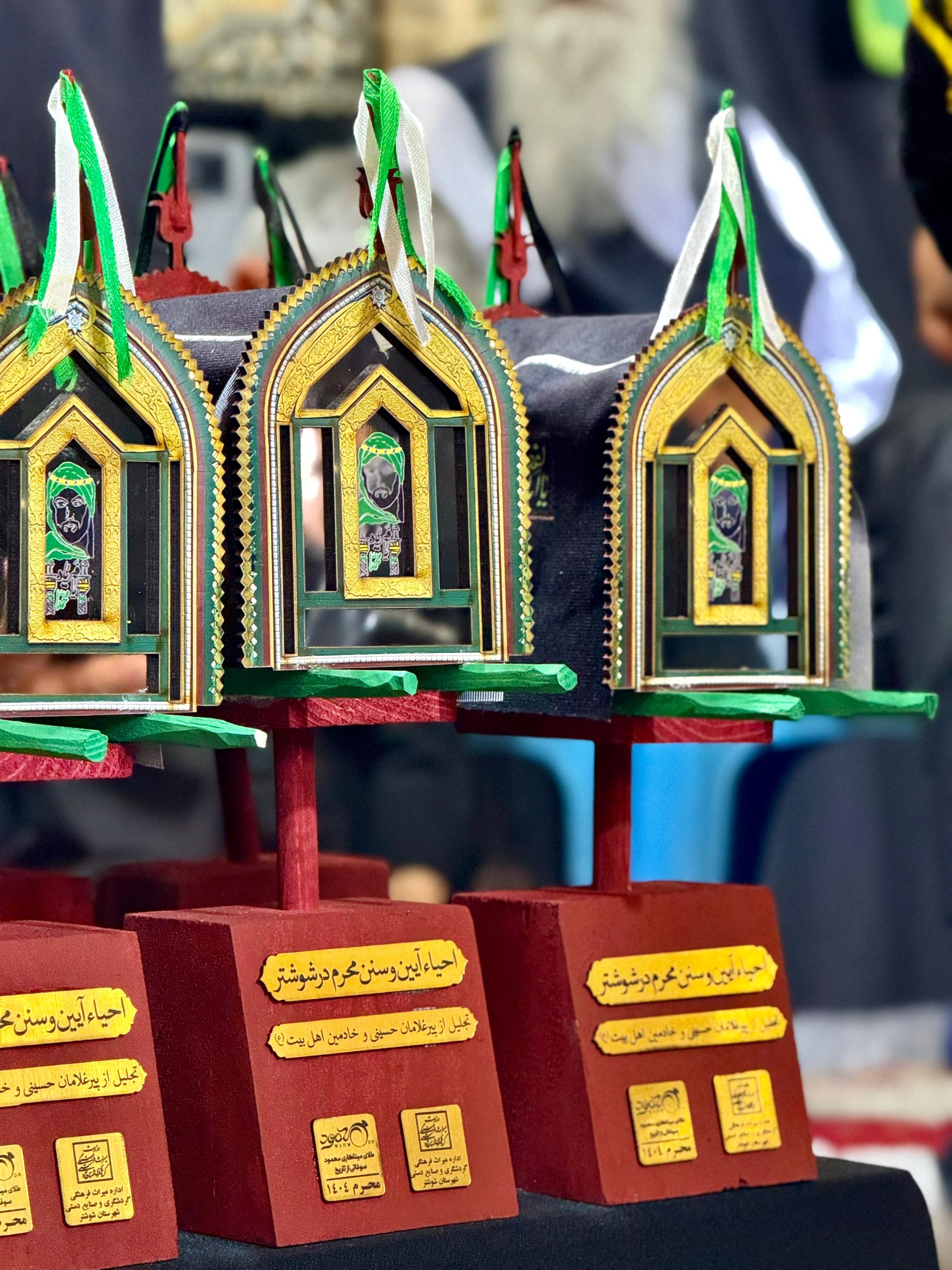 در پایان این رویداد که با استقبال کم نظیر مردمی همراه بود، به پاس سال ها خدمتگزاری صادقانه و خالصانه پیرغلامان امام حسین(ع) مراتب تقدیر از ایشان با لوح تقدیر و تندیس نماد نخل مقام حسین شوشتراز طرف گروه طلا سازی محمود و اداره میراث میراث فرهنگی گردشگری و صنایع دستی شوشتر به عمل آمد .